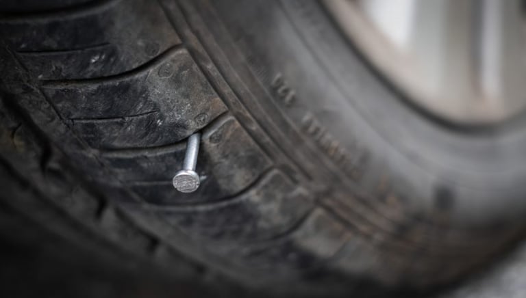 Just because a tire has a nail does not mean it needs to be replaced. We inspect the tire and, when the puncture is located in the tread, perform a proper patch and plug repair to restore a safe, reliable seal. Tires with sidewall damage, dry rot, or excessive wear cannot be repaired and will be recommended for replacement.